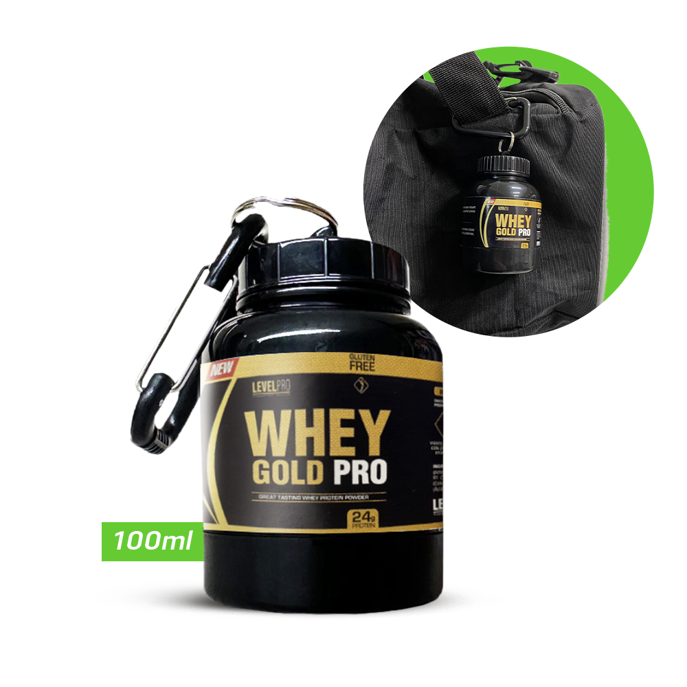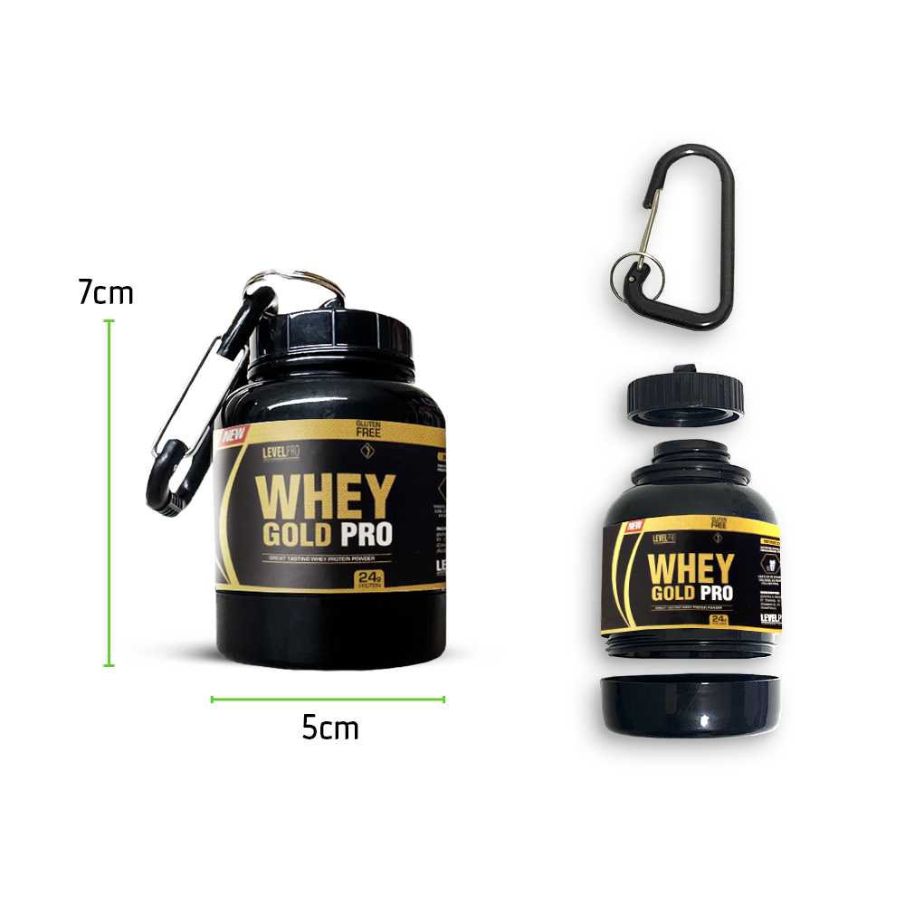 - Cuenta con un gancho para colgarlo en la mochila, bolso, morral, etc. - Sirve como embudo para agregar el producto a botellas o recipientes con pico angosto. - Súper resistente. - Medidas 7cm x 5cm Capacidad: 100ml Modelos: Whey Gold Pro, Iso XP o Kevin Levrone |