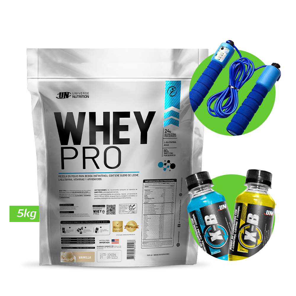 PROTEÍNA WHEY PRO UNIVERSE NUTRITION 5KG UN + REGALOS